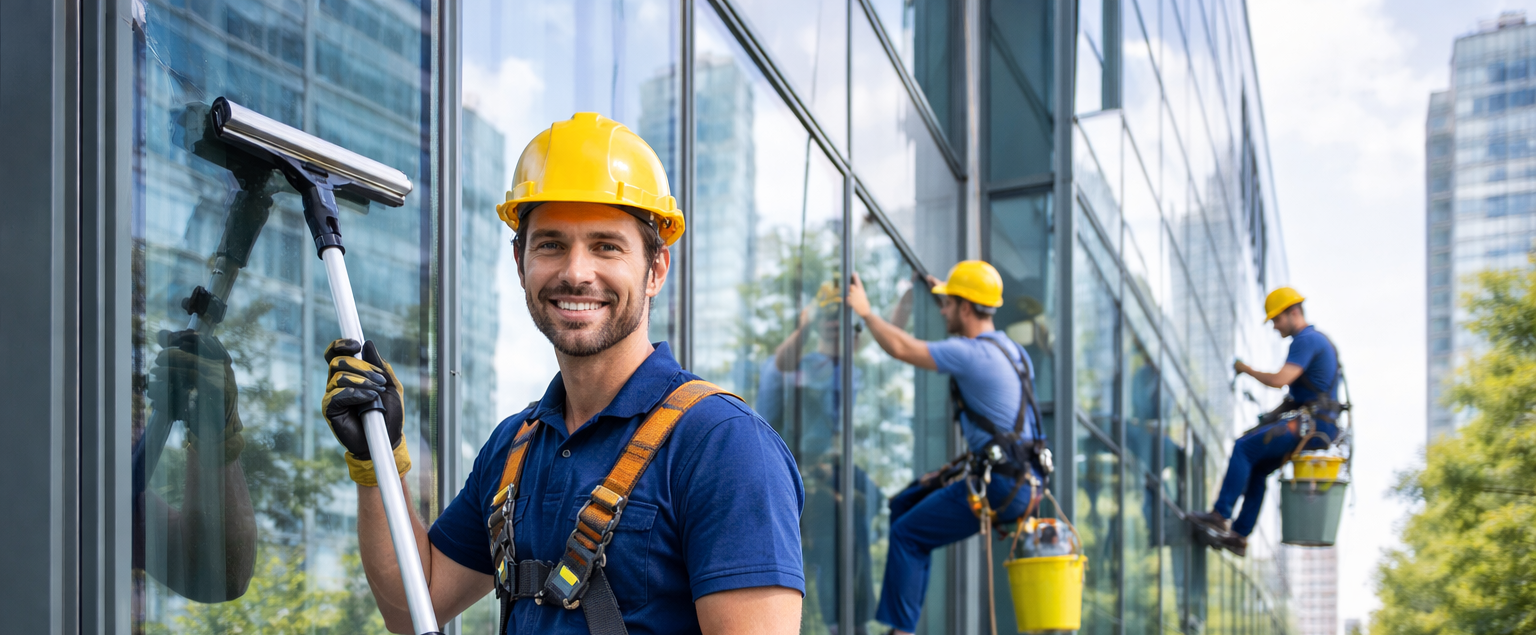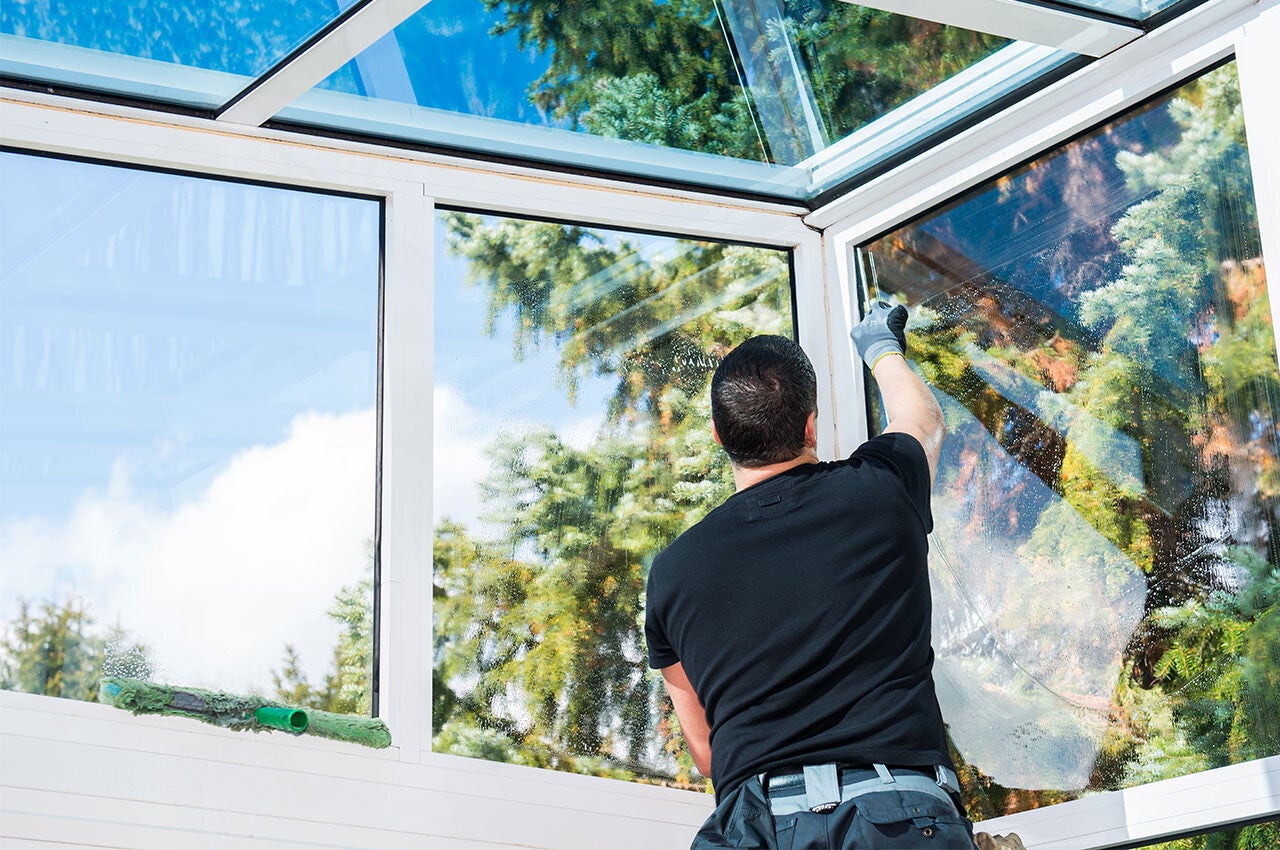 Professionelle und streifenfreie Reinigung von Glas- und Fensterflächen.